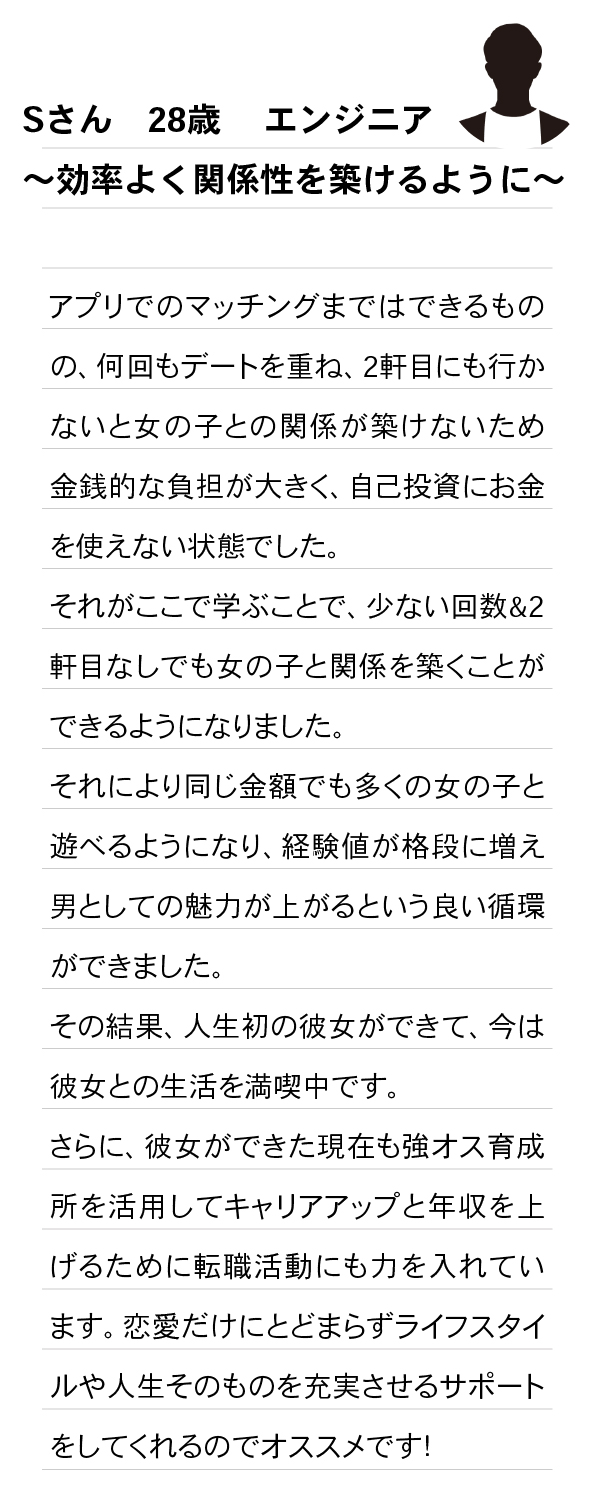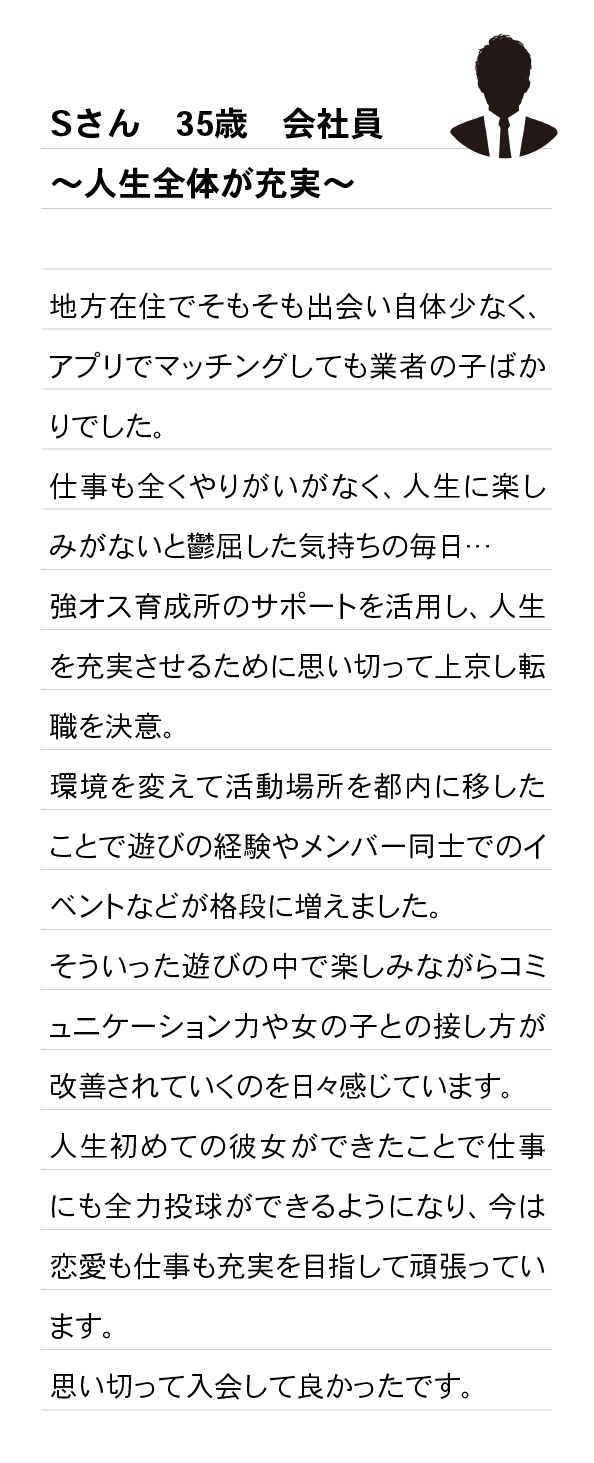 弊社のサービスを活用し年収UPを実現した方、営業職へ転職し恋愛で身につけたコミュニケーション力を活かす方、郊外から都心へ引越し遊びやすい環境を手に入れた方が多数